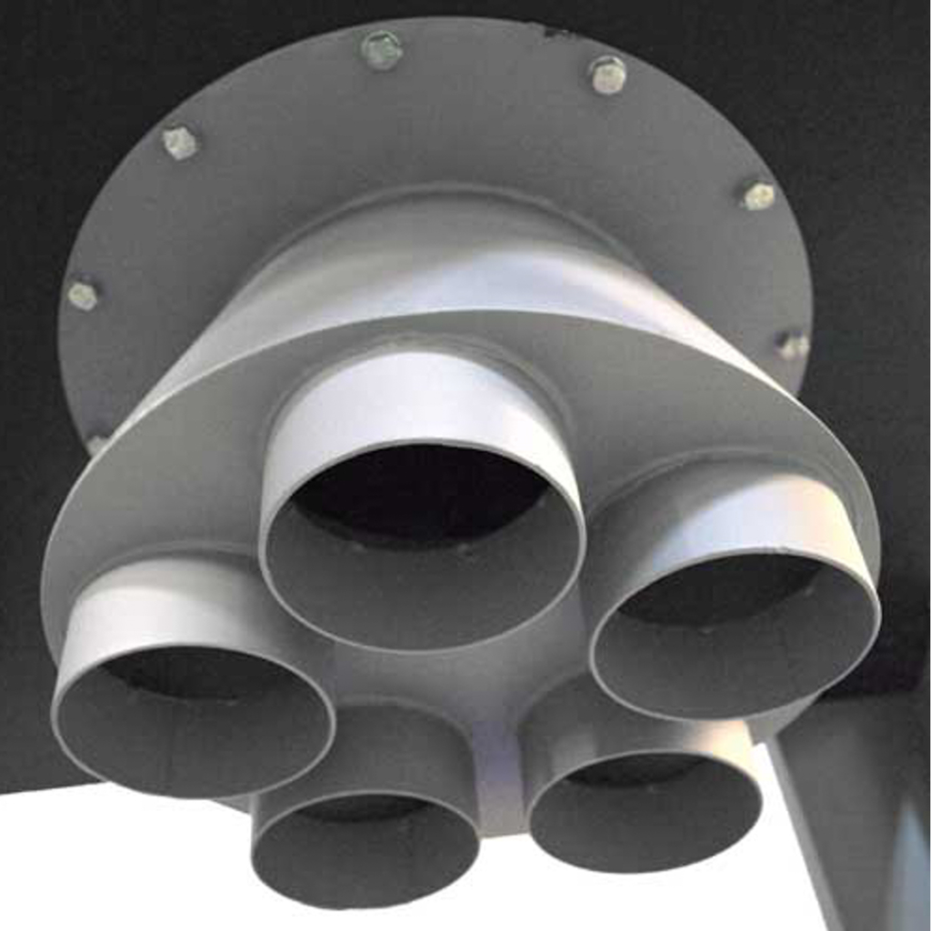 Five 4" inlets for flexible ducting and shop layout